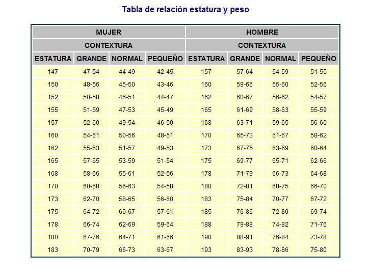 Tabla de la OMS peso ideal según complexión física