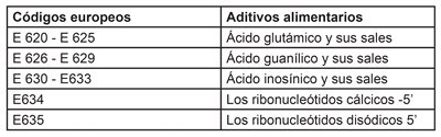 Productos que incluyen potenciadores del sabor