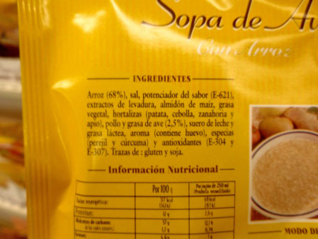 En el etiquetado de los alimentos, por ley, deben de incluir los aditivos que se añaden en los alimentos, en este caso, los potenciadores de sabor. Pero no está obligado indicar la cantidad añadida de aditivo.