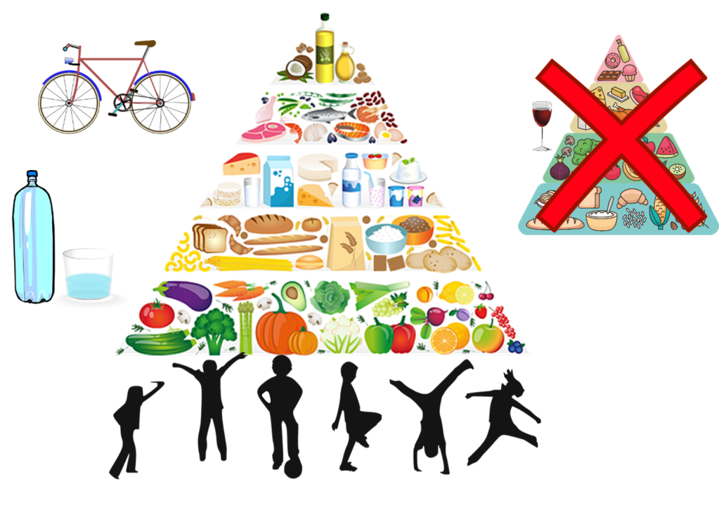 Hay muchas maneras de poder aplicar una enseñanza más práctica y actualizada sobre alimentación saludable y, no solo con la teoría que se pueda leer de un libro durante un único día en todo el curso, acerca del tema. En primer lugar, eliminando herramientas como la pirámide alimenticia que existe actualmente, donde la base no deben ser hidratos de carbono sino verduras y frutas, y donde el consumo moderado de alcohol y bollería directamente no debería tener lugar en la guía (2).
